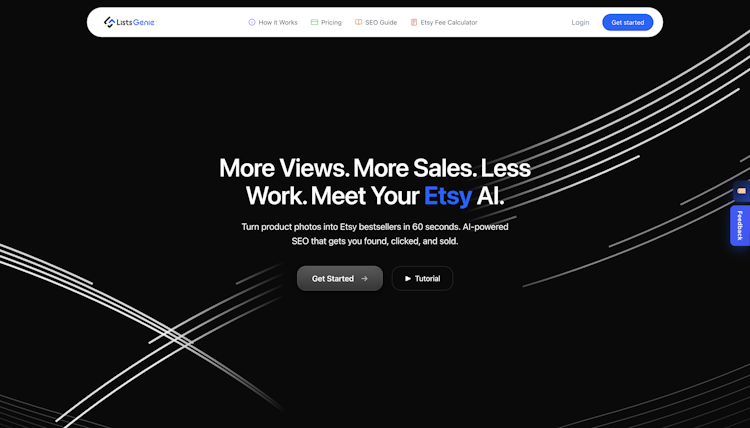 ListsGenie is an AI powered listing optimization software designed for Etsy merchants requiring efficient creation and management of product listings. The platform utilizes advanced visual recognition technology and natural language processing to transform product photographs into search engine optimized listings complete with titles, descriptions, and tags. It serves a range of users from hobbyists and new sellers to established businesses and agencies managing multiple storefronts across international markets.