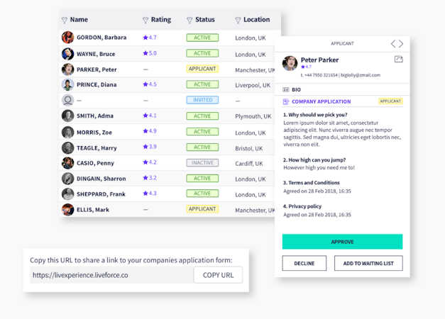 Build your ideal workforce from the ground up. With Liveforce, you can easily attract, onboard, and retain top-quality talent - from temporary workers to freelance specialists. Create detailed staff profiles, store essential documentation, and maintain a searchable database of qualified team members.