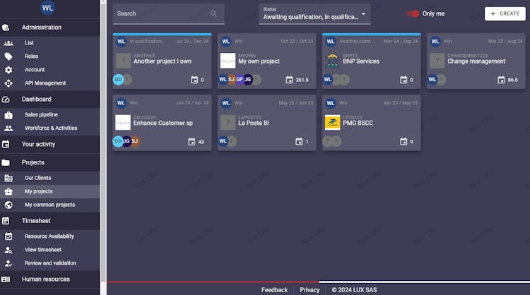 LUX was created in 2020 by formers consultants witnessing the lack of dedicated tool to cover our specific services based industry.