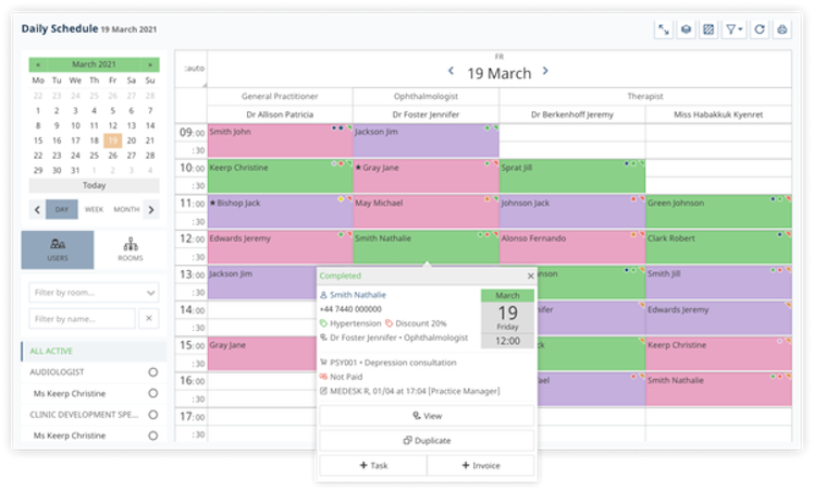 The platform enables medical professionals to record medical history, analyze patients’ progress, create and upload documents or forms, and manage invoicing. Medesk allows practitioners to generate reports and gain insights into feedback on service quality, finances, sales, and marketing operations. Businesses can also utilize color-coded labels and tags for various clinical purposes, schedule reminders, prioritize tasks, process payments, and conduct video consultations.