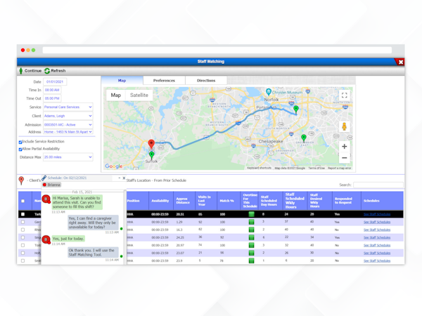 MEDsys assists with staff and client matching, route planning, and mass editing of schedules.