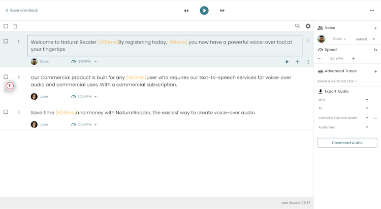 NaturalReader Commercial allows users to create VoiceOver audio for training videos, YouTube videos, podcasts, and more.