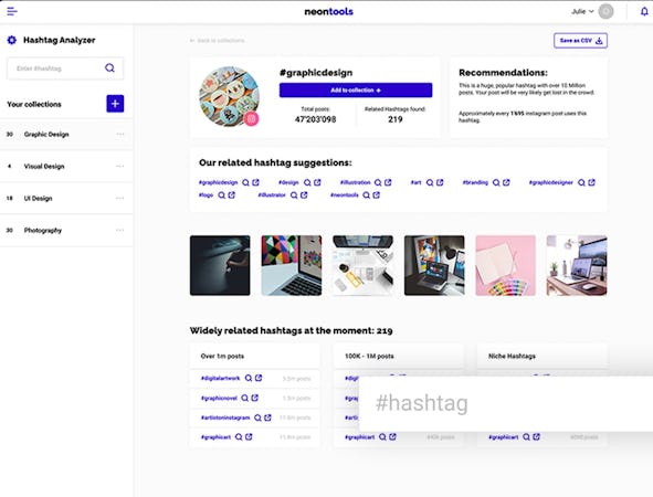 The hashtag analyzer, analyze, gathers, and groups your Instagram hashtags to successfully enhance your IG campaigns. Additionally, this tool will propose big, small, and niche hashtags to perfectly accompany your own hashtags.