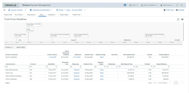 Oracle Textura Payment Management is a construction payment management solution that manages cashflows, billing & invoicing, waiver management, electronic payment processing, construction accounting insights, and more. The system comes with ERP and other accounting integrations to increase financial visibility and accurately create invoices for time and labor. Additionally, Oracle provides a collaborative dashbaord for subcontractors and project teams to ensure compliance across the board.