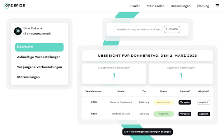 Orderize is a comprehensive software solution for local retailers that streamlines the entire pre-ordering process for business customers. The system automates the process from start to finish, including displaying the available products on specific days, customers choosing the products, payment processing, and invoice generation and dispatch via email. The system also includes an integrated refund process, a delivery and pick-up module, and the possibility to manage multiple locations from one account.