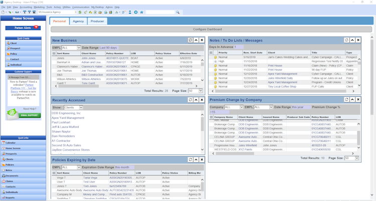 Partner XE is a web-based insurance and claims management software that helps businesses manage documents, proposals, client information, accounting, and more from within a unified platform. It allows staff members to automatically send text messages to clients regarding policy renewal, late payments, and other relevant information.
