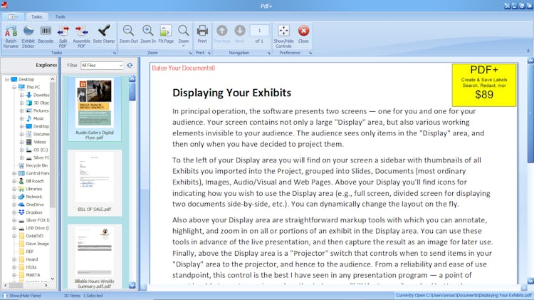 With PDF+, users can bates number documents and utilize exhibit stickers, bar codes, batch renaming, and other functions. These legal-specific features can be used to prepare documents for deposition, trial, and mediation.