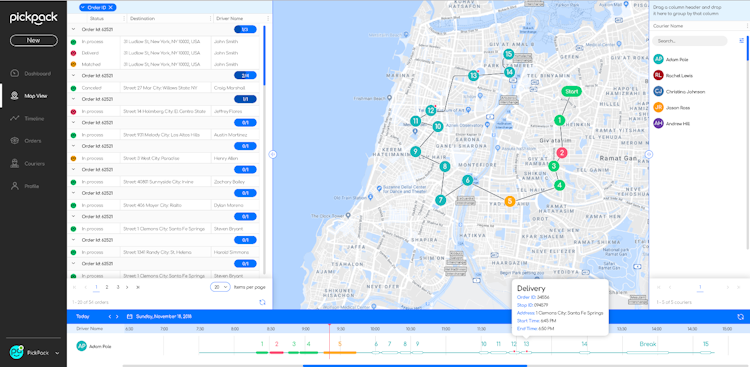 Pickpack provides Powerful real-time optimization algorithm for delivery routes which increase the efficiency of your orders and ensure orders and drivers are matched accurately. Our algorithm takes into account deliveries with pickups and drops for local delivery services, one pickup and multiple drops for logistic companies and retailers, time windows, vehicle capacities, on demand deliveries, priority stops, traffic, driver speeds, driver shift times, driver breaks, driver service time and more.