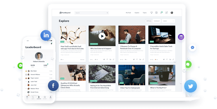 PostBeyond is a cloud-based employee advocacy platform, which helps businesses in human resources (HR), marketing, finance, and other sectors manage social selling, email newsletters, brand communication, and more. The platform makes it possible for marketers to use the social networks of their advocates to raise visibility and engagement with customers.