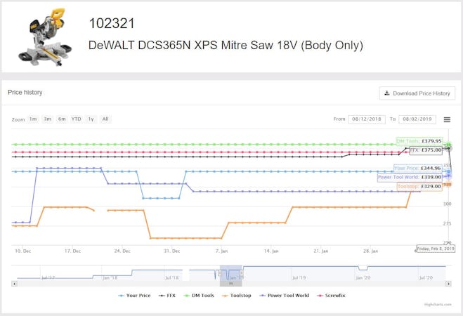You also benefit from access to price history data, custom reporting, and tools that help highlight areas where you may be under or overpricing compared to the market. Our system also supports MAP monitoring and stock tracking for key competitors.
