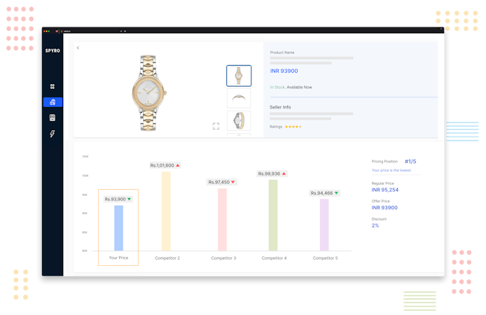 Pricing Intelligence Tool is an artificial intelligence (AI)-enabled platform that helps businesses analyze competitors’ price positioning, match one-to-one products with discounts, access seller-level analysis, and more.