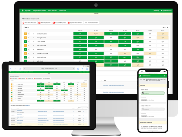 Productive Parks is a cloud-based maintenance management solution that helps parks and recreation businesses streamline industry processes. The system allows staff members to maintain an inventory database and automatically track, update, and manage item stocks. The administrator dashboard enables users to create new work orders, track time across multiple tasks and monitor completion status based on tags such as assigned, in-process and completed.