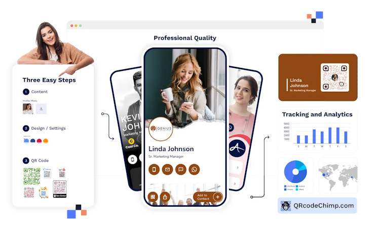 QRCodeChimp is a comprehensive QR code generation and management platform that enables businesses, marketing agencies, and enterprises to bridge offline and online channels through customizable and trackable QR codes. The platform supports both static and dynamic QR code creation with dynamic codes offering editable destination links without requiring reprinting of physical materials. The system caters to organizations across industries such as retail, hospitality, healthcare, real estate, and professional services that require unified solutions for marketing campaigns, customer engagement, product packaging, and digital business card distribution.