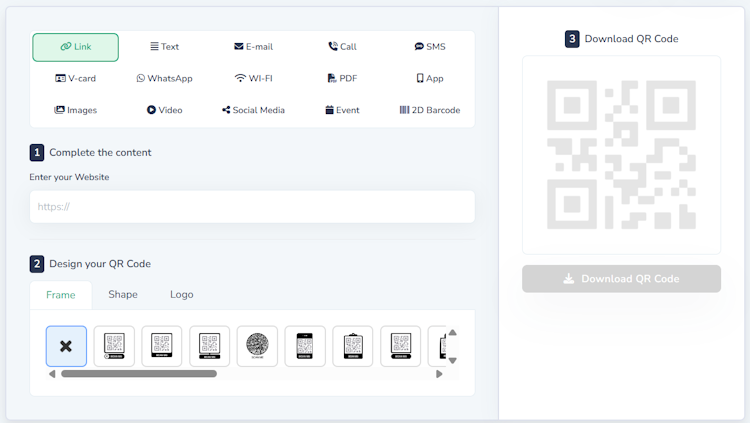 The platform offers two primary QR code types with distinct functional characteristics. Dynamic QR codes allow modification of the destination URL or encoded content after generation and distribution, eliminating the need for reprinting physical materials when campaign parameters change. These codes include tracking capabilities that record scans, geographic locations, timestamps and device information. Static QR codes encode information directly into the QR pattern, resulting in permanent codes that cannot be altered after creation and that are suitable for applications such as Wi-Fi credentials, contact information and plain text sharing. The software supports a variety of content types including website links, email addresses, SMS messages, phone numbers, messaging platform communications, vCard contact information, calendar events, PDF documents, application downloads, images, videos, social media profiles and two-dimensional barcodes. The customization engine provides design control over colors, shapes and patterns while incorporating company logos and branded frames with custom call to action text. A landing page builder enables nontechnical users to create fully customized destination pages without coding.