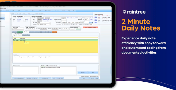 Raintree is a total, all-in-one EMR/EHR solution for Physical Therapy, Occupational Therapy, Pediatric Therapy, Speech Therapy, and ABA organizations - from medium to enterprise level. Raintree serves six of the ten largest therapy and rehab organizations in the United States and has a retention rate of 95%. Raintree clients appreciate the personalized service they receive, from integration to a continued relationship with the Raintree client success team.
