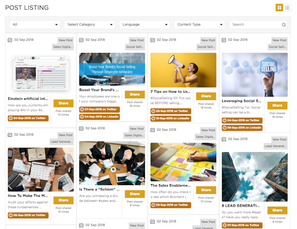 It shows how popular each piece of content is with the team and their network at a glance. Ready For Social allows sales professionals to share content with multiple social networks, immediately or schedule them for release at a future date. The platform includes various features such as post scheduling, content distribution, content previewing, and more.