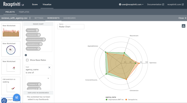 Receptiviti delivers scientifically validated psychological and behavioral insights derived from spoken and written language. It processes transcripts, digital communication such as email or chat, social media, surveys, and other contexts where naturally flowing language is used.
