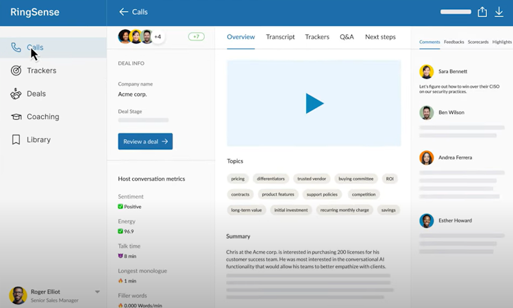 RingSense is an AI-powered conversation intelligence platform for sales teams. It deeply integrates with CRMs to provide customizable and optimized insights from customer interactions across calls, emails, and video meetings.