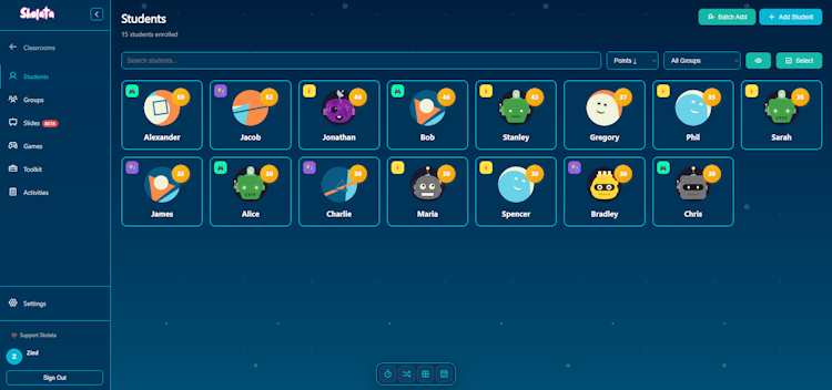 Skolata Education is a classroom gamification and management platform designed for K-12 educators who aim to integrate game design elements into teaching. The platform delivers a centralized interface for monitoring student engagement, facilitating interactive activities, and documenting performance through a point-based reward scheme. The solution does not require student accounts or email addresses and operates on any web-connected device with straightforward setup procedures.