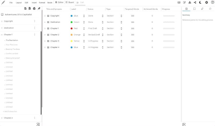 Squibler is a screenwriting software that helps businesses create, modify, and visualize sections of the screenplay to gauge its structure and impact. The platform enables managers to track chapter titles, synopsis, progress, and character development.