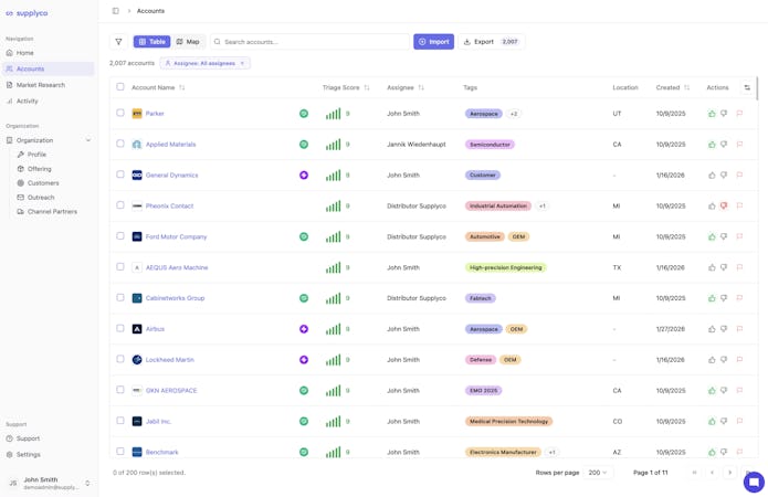 The platform offers daily account ranking based on genuine buying signals so sales teams can focus on their top accounts without relying on spreadsheets. It automatically surfaces critical indicators such as funding rounds, facility expansions, and production ramp-ups as they occur. Follow-up management capabilities track contact attempts to ensure opportunities remain active when competitor teams may withdraw. A unified network view across distribution channels eliminates dropped handoffs and redundant outreach.