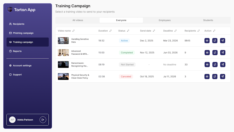 - Results On Autopilot: Schedule training campaigns once to run year-round, with regular progress updates and zero IT intervention.