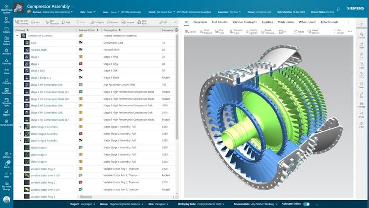 Teamcenter provides a single platform to manage their electrical, mechanical, simulation and software data. With Teamcenter's change management feature, users can view types and dates of modification, maturity levels, and see how changes affect all products or documents in the business. BOM management capabilities allow companies to visualize and measure the BOM without needing to access the CAD authoring tools it was designed in.