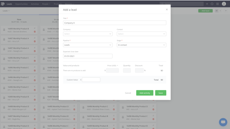 CRM solution to manage sales process