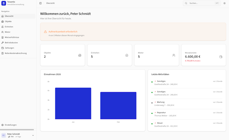 Tenantio is a comprehensive property management software designed for private landlords in Germany. The platform automates tasks associated with managing residential properties and supports the complete administration of real estate assets. Tenantio caters to property owners who manage anywhere from two to fifty or more residential units without professional support and aims to reduce administrative workload while maintaining legal compliance.