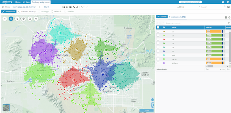 Territory models are easy to share, visualize, and justify. Sales leaders, operations managers, and field supervisors work with the same data and the same map, improving communication and reducing friction during reorganizations or adjustments.