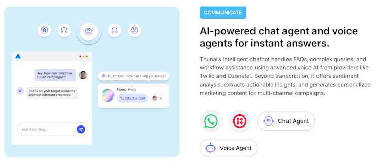 •Integration – Thunai connects with CRMs, knowledge bases, and existing business tools.