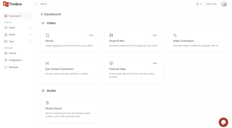 Timbre is an AI powered media editing platform that automates the transformation of raw audio and video footage into polished, export ready content without requiring manual timeline editing or traditional post production workflows. The platform operates as a browser based web application, a mobile application, and an Adobe Premiere Pro plugin. It caters to content creators, podcasters, social media managers, and video production teams that demand rapid turnaround for multi platform content distribution. All post production tasks can be executed with a single click or through guided automation.