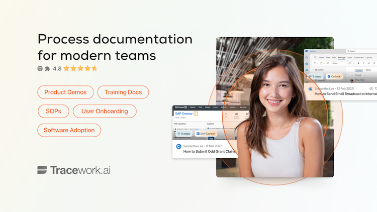 Organizations worldwide implement Trace to address critical operational challenges including new hire onboarding, customer training, and internal knowledge management. The platform transforms tacit knowledge into explicit, accessible guidance that remains available whenever needed. By centralizing process documentation and making it visually intuitive, Trace helps organizations maintain operational consistency while reducing the learning curve for new systems and procedures. The result is accelerated proficiency development, reduced support requests, and improved operational efficiency across teams of all sizes.