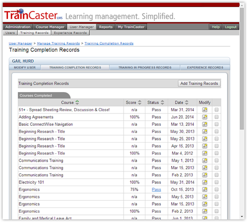 TrainCaster LMS’s user interface
