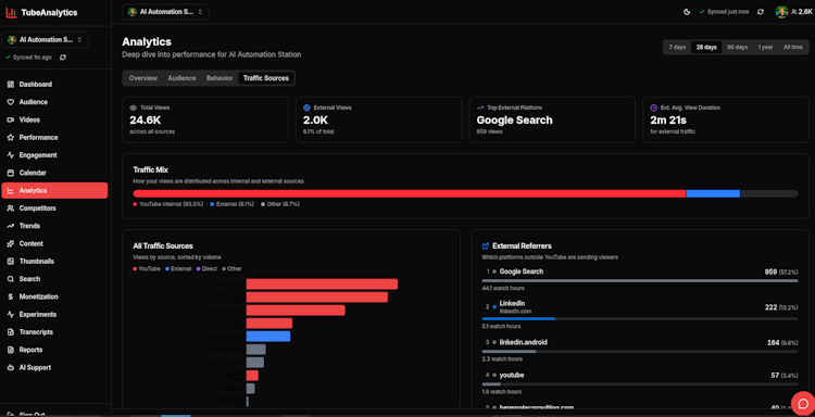 TubeAnalytics is a YouTube analytics platform that provides content creators, agencies and multi channel networks with advanced performance tracking, competitive intelligence and AI powered content optimization tools. The platform supports channels ranging from those with fewer than one thousand subscribers to networks managing multiple channels by consolidating channel metrics, competitor data and predictive trend signals into a unified dashboard. TubeAnalytics distinguishes itself from browser extension based tools by offering deeper analytical capabilities and specialized revenue modeling tailored to data driven growth strategies beyond the native YouTube Studio functionality.