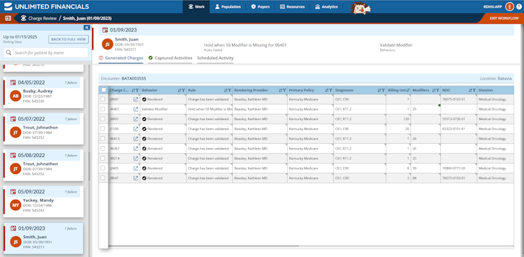 Unlimited Financials is a practice management software platform designed exclusively for specialty healthcare organizations. It serves as an integrated solution for medical billing and revenue cycle management across independent specialty practices, enterprise networks, health systems, and revenue cycle management service providers in the United States. The system addresses complex financial and operational requirements in over forty clinical specialties including cancer care, dermatology, diagnostic imaging, gastroenterology, infusion services, neurosurgery, mental and behavioral health, ophthalmology, rheumatology, and urology. The platform supports more than six thousand five hundred specialty providers across four thousand five hundred clinical offices and processes over seventy billion dollars in net new charges annually for approximately three million patients.