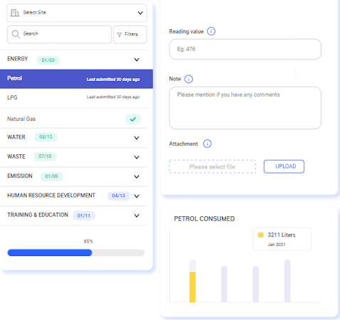 Updapt is a global tech company. The SaaS-based ESG tool enables centralized control of ESG data across locations and departments within an organization. The tool automates GHG accounting & provides analytics to set short and long-term realistic goals. As a cloud product, it offers multiple options like custom unit setup, Excel upload or API integration options for easy use. The tool provides digitalized formats of BRSR and other Global Reporting Standards, including GRI, SASB, TCFD, UNSDG, etc. Our tool hosts multiple modules featuring analysis and benchmarking to help stakeholders (investors, internal departments, rating agencies) make sustainability decisions.