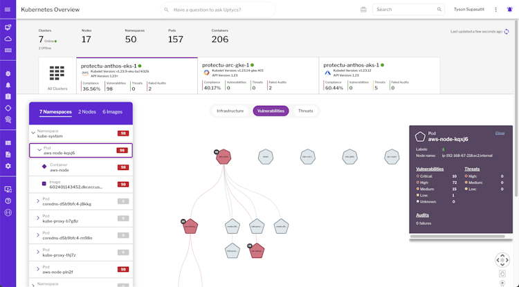 2. Enhanced Visibility and Control: Uptycs provides clear visibility into container assets, Kubernetes control planes, and associated risks, simplifying monitoring and management.