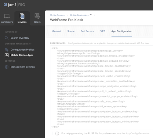 WebFrame Kiosk is a kiosk solution designed to help businesses utilize iPad and iOS devices to display web applications, documents, multimedia, websites, and more. It offers a built-in security module, which lets administrators erase user data between sessions, allow access to specific websites and protect applications through custom restrictions.