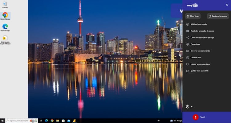 The Weytop Cloud PC is a completely dematerialized virtual computer where the work environment is hosted in the Cloud (OS, software, memory, computing power, etc.).