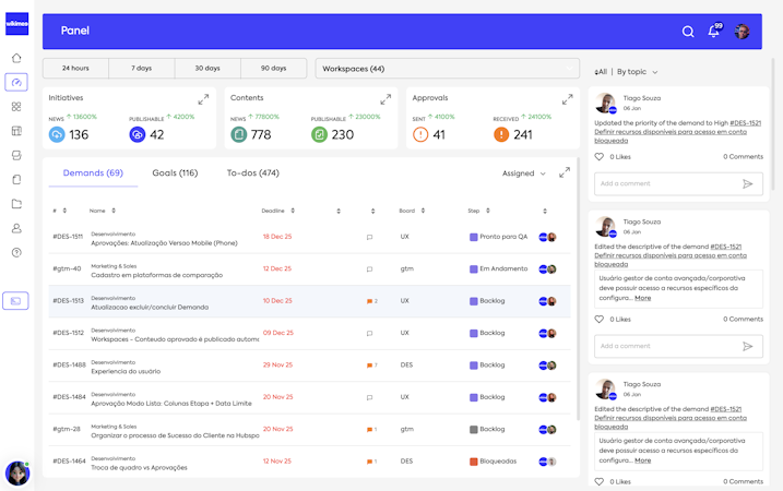 • Real-time insights: Gain real-time visibility into project status and content performance with dashboards and detailed reports for better tracking and decision-making.