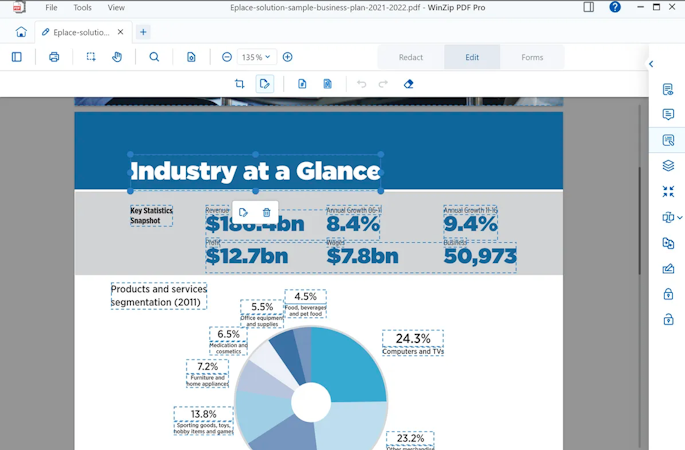 In order to make PDFs simple, WinZip has advanced beyond zipping. It can now read and review any type of PDF file, convert files from and to PDF, combine several files into one PDF, edit, add, delete, extract, and arrange PDF pages, and much more.