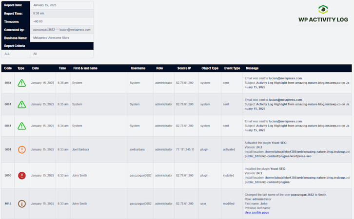 Get early warnings of potential threats, thanks to alerts for suspicious changes like plugin edits, user role updates, or settings modifications—helping you detect defacements or security issues fast.