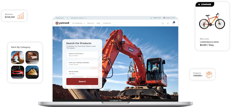 Yo!Rent is a readymade rental marketplace solution that can be used to launch rental stores and marketplaces in niches like equipment rental, automobile rental, dress rental, adventure gear rental, furniture rental, and more. The solution has been developed to help businesses undergo complete digital transformation and automate those operations on online platforms that were once only possible manually.