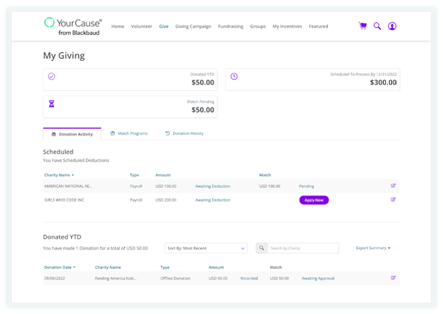 YourCause CSRconnect's features