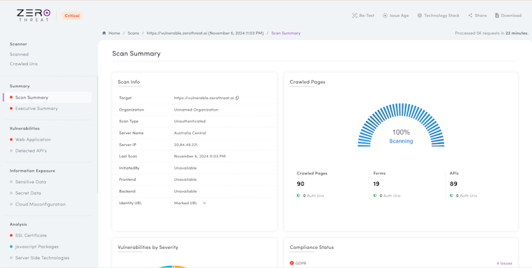 Designed for modern applications, ZeroThreat includes advanced browser automation to handle SPAs, authenticated sessions, and complex user workflows. It uncovers critical issues such as authentication bypass, business logic flaws, and workflow abuse that are often missed by conventional scanners.