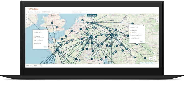 Using advanced algorithms and data analytics, 4flow VIA enables businesses to analyze their current supply chain structures and identify areas for improvement. It provides comprehensive visibility into factors such as transportation routes, warehouse locations, and production capacities, allowing businesses to make informed decisions.