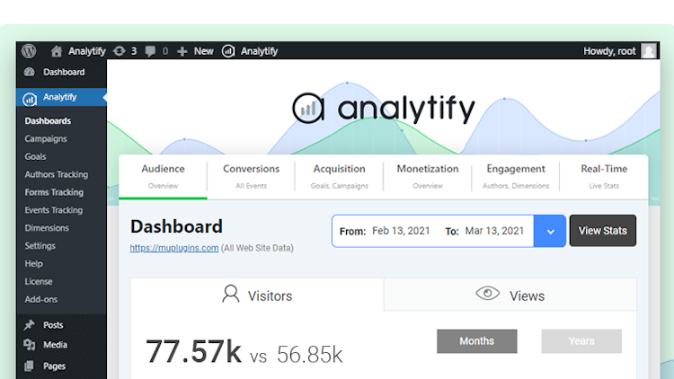 Analytify is one of the most popular analytics plugins for website insights that help businesses to link their WordPress website with a Google Analytics account and display analytics of their website within your website WP dashboard.