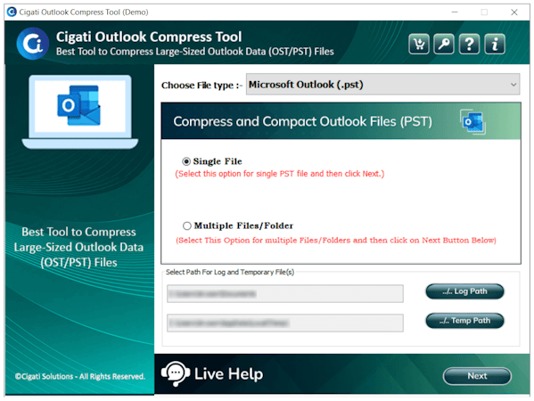 Cigati PST Compress Tool is a specialized application that reduces the size of Microsoft Outlook PST and Exchange OST files. It addresses challenges related to managing oversized mailbox files by enabling batch compression of single and multiple data files. The solution is designed for IT professionals and system administrators who require efficient storage optimization without compromising data integrity. It targets organizations that utilize Microsoft Outlook for email management and need to maintain accessible archives while minimizing local and network storage demands.