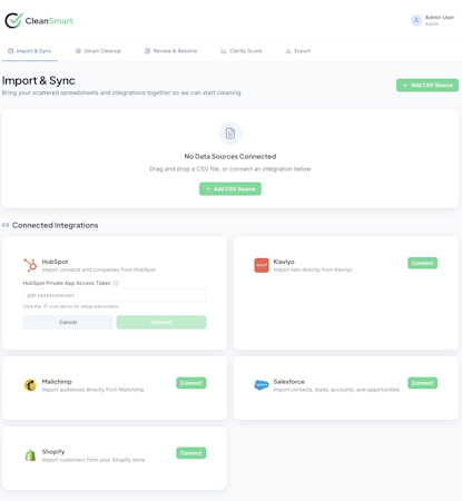 The software implements enterprise grade security measures to safeguard data throughout the cleaning lifecycle. All data at rest and in transit benefit from advanced encryption standard with a two hundred and fifty six bit key. Data isolation architecture ensures each organization’s datasets remain fully segregated within the environment. Cryptographic verification using secure hash algorithm with a two hundred and fifty six bit digest confirms complete removal of records upon request. Integration options for connecting CleanSmart with external business systems are documented by the vendor.